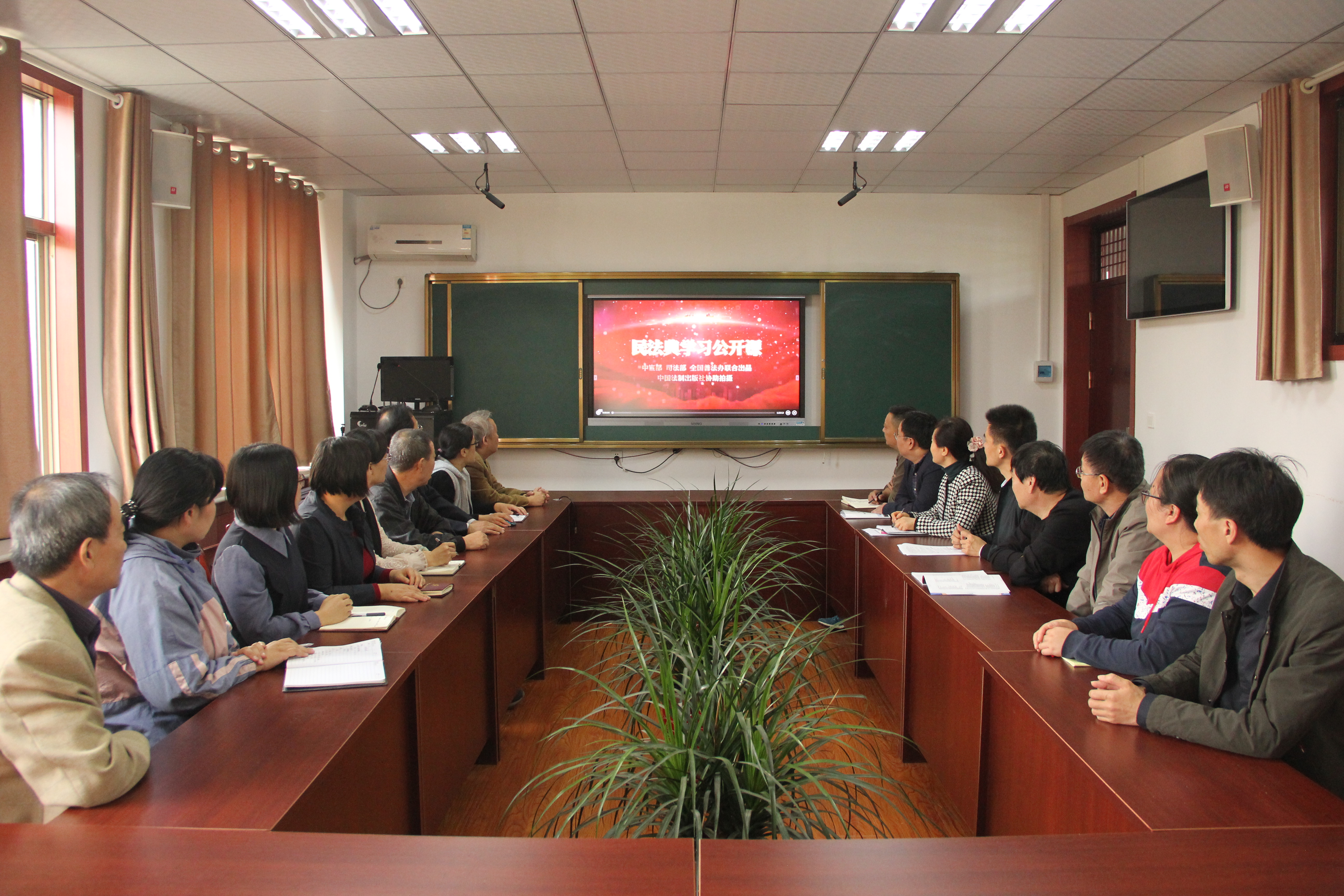 然后,与会人员通过中国普法网一起观看了刘贵祥主讲的民法典公开课《民法典与社会生活密切相关的几个问题》。老师们感到民法典顺应了时代发展的要求,与百姓社会生活息息相关,学习掌握好民法典对今后更好的生活和工作意义重大。大家纷纷表示,作为新时代的高校教师与管理者,应当知法、懂法、守法,用法律来维护自身权益,把民法典所蕴含的法治精神和理念融入到工作生活中,让民法典实实在在走到我们身边、走进我们心里。