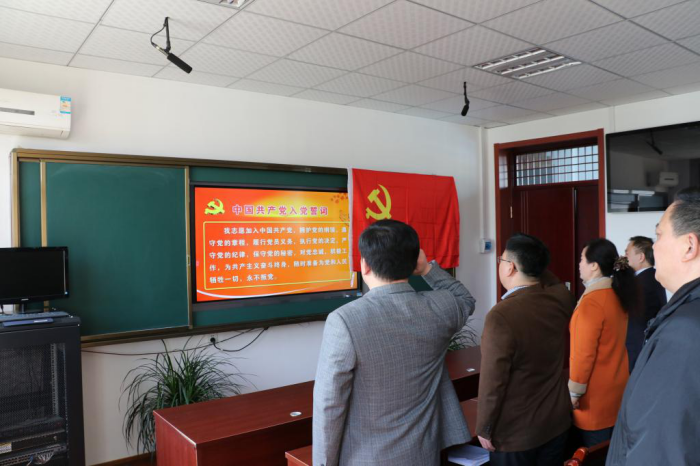 党总支副书记、教工党支部书记马秀峰带领全体党员重温入党誓词。党员们面对鲜红党旗,右手握拳,庄重宣誓,进一步坚定了政治立场,增强了使命感和责任感。