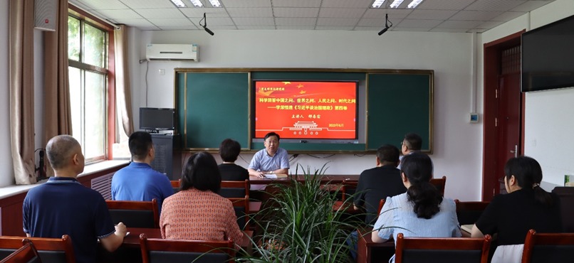 教工党支部副书记邢春雷以“科学回答中国之问、世界之问、人民之问、时代之问——学深悟透《习近平谈治国理政》第四卷”为题,为支部全体党员上了一堂主题鲜明、内涵深刻的党课。