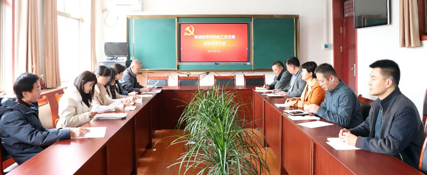 会议室召开党员大会开展民主评议党员工作。大会应到正式党员11人,实到11人。会议由教工党支部书记宋贞海同志主持。