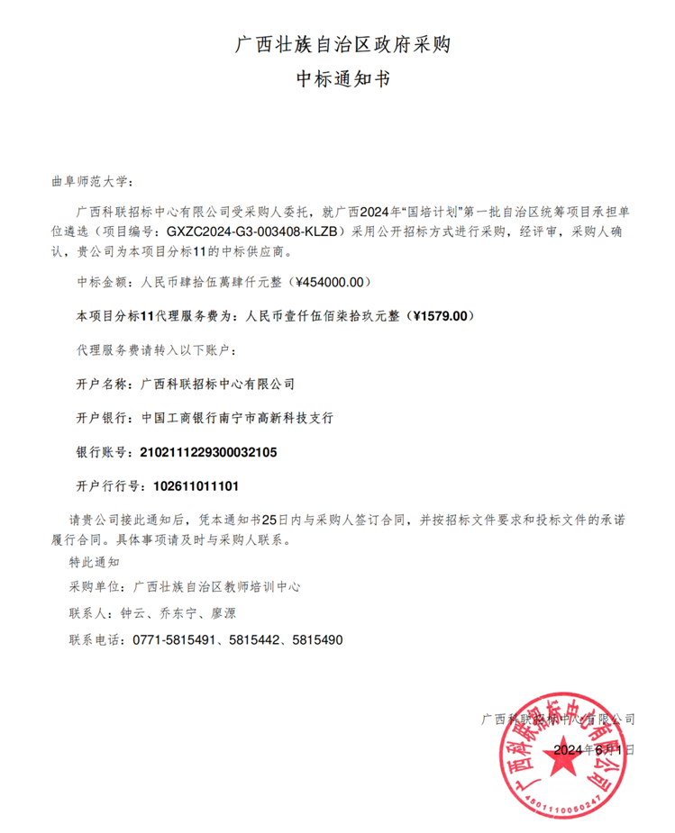 2024年6月1日,中国政府采购网及中国政府购买服务信息平台正式公布了《广西科联招标中心有限公司关于广西2024年“国培计划”第一批自治区统筹项目承担单位遴选(GXZC2024-G3-003408-KLZB)中标结果公告》,我校成功中标第11号分标——广西农村骨干教师培训(初中地理)。