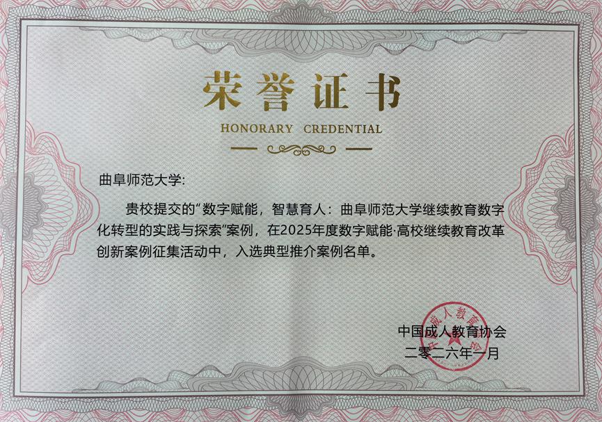 将以此次荣誉为契机,持续深化技术赋能,不断拓展数字化应用场景,优化人才培养方案,为构建终身学习体系、服务区域经济社会发展输送更多高素质人才,贡献曲师智慧与力量。