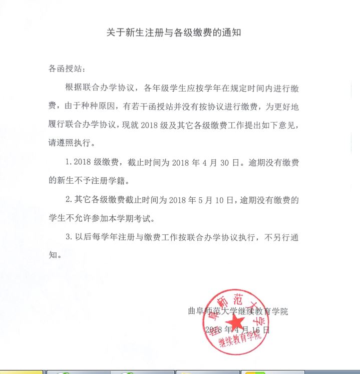 关于新生注册与各年级缴费的通知