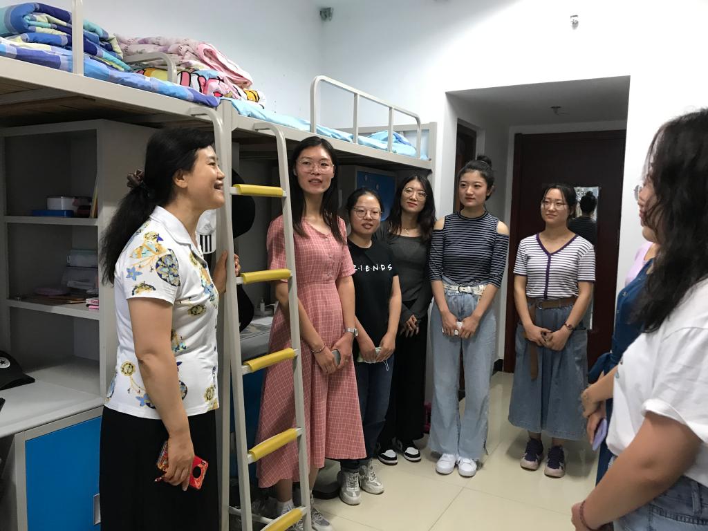 党总支书记茌淑君带队,职业与继续教育研究院院长何爱霞,研究生辅导员孙长远、康红芹共同组成检查小组,前往研究生宿舍开展卫生、安全、防疫等检查工作。检查小组仔细查看了三个年级的宿舍,对门窗、走廊、阳台和电路设施等宿舍生活环境进行了详细检查,以确保研究生同学安全舒适地入住。茌书记在检查现场寄语2020级新生:来到炸金花