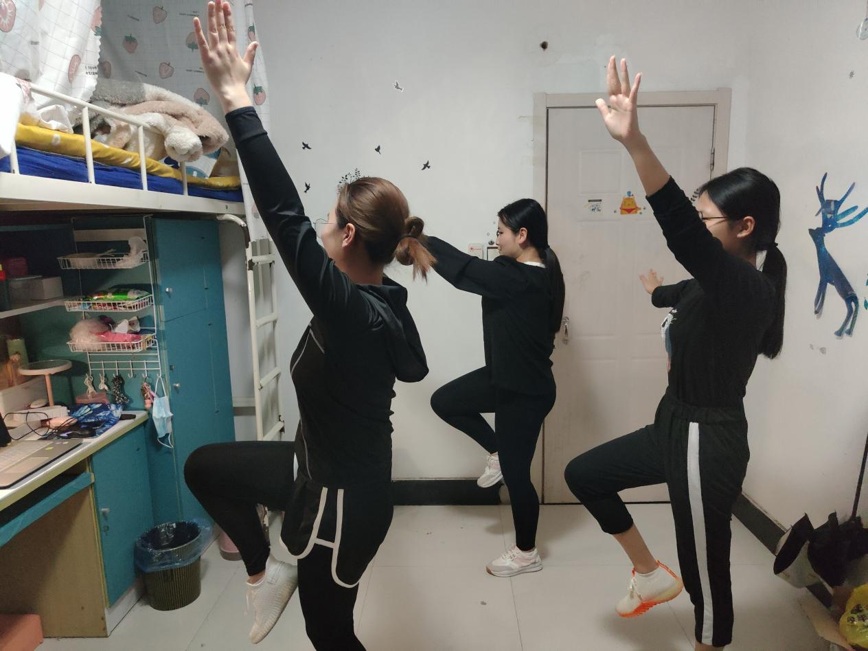 研究生的良好的精神风貌和团结奋进的精神。在保证安全防范的前提下,同学们突破场地、器械限制,进行多形式的体育运动,如集体健身操、练瑜伽、爬楼梯等,既增强自身免疫力又舒缓情绪,让大家以积极乐观的心态对抗疫情。同学们还开展了宿舍“云”文化活动,不仅就日常学习中遇到的学术问题进行深入的讨论交流、共同进步,还在课余时间观看经典电影、纪录片,如《长津湖》《抗美援朝保家卫国》,不断提升自身文化素养。