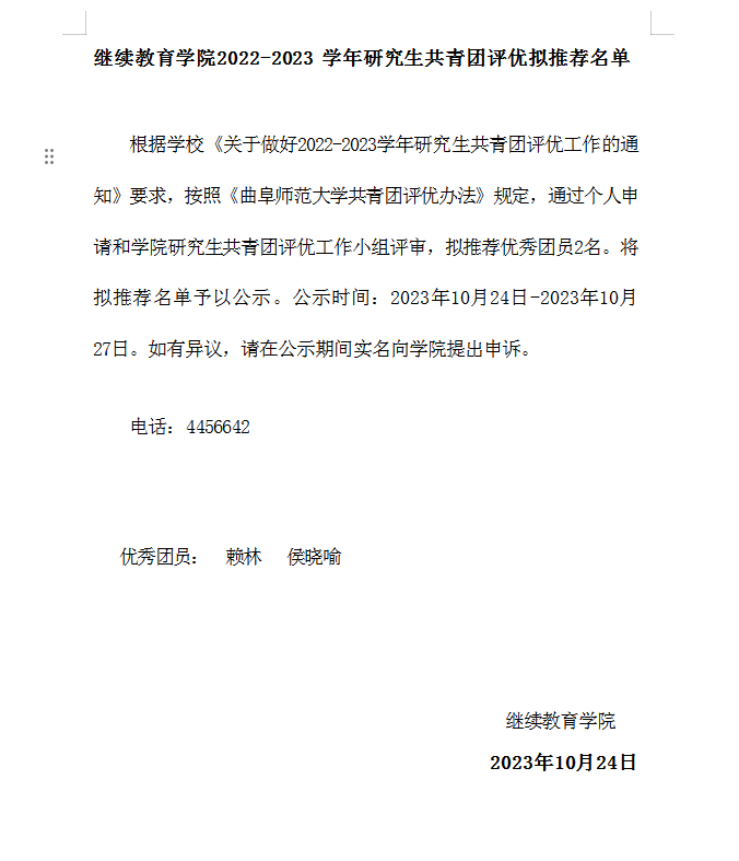 炸金花 2022-2023 学年研究生共青团评优拟推荐名单